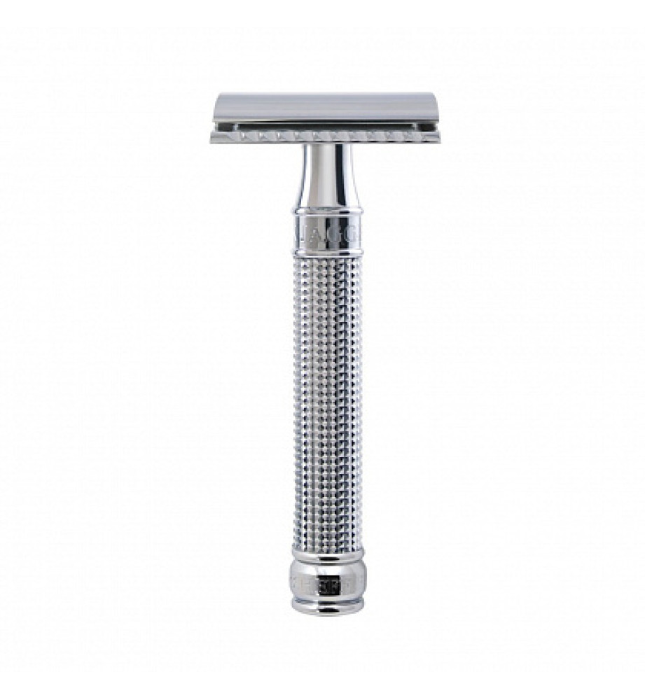 Классическая Т-образная бритва Edwin Jagger с закрытым гребнем и алмазным напылением демонстрирует первоклассное качество бритья. Сделана из хромированной латуни. Ручка имеет рельефную поверхность, выполненную в стиле 3D Diamond - уникальной технологии Edwin Jagger. Такая поверхность обеспечивает отличное сцепление бритвы с мокрой рукой.