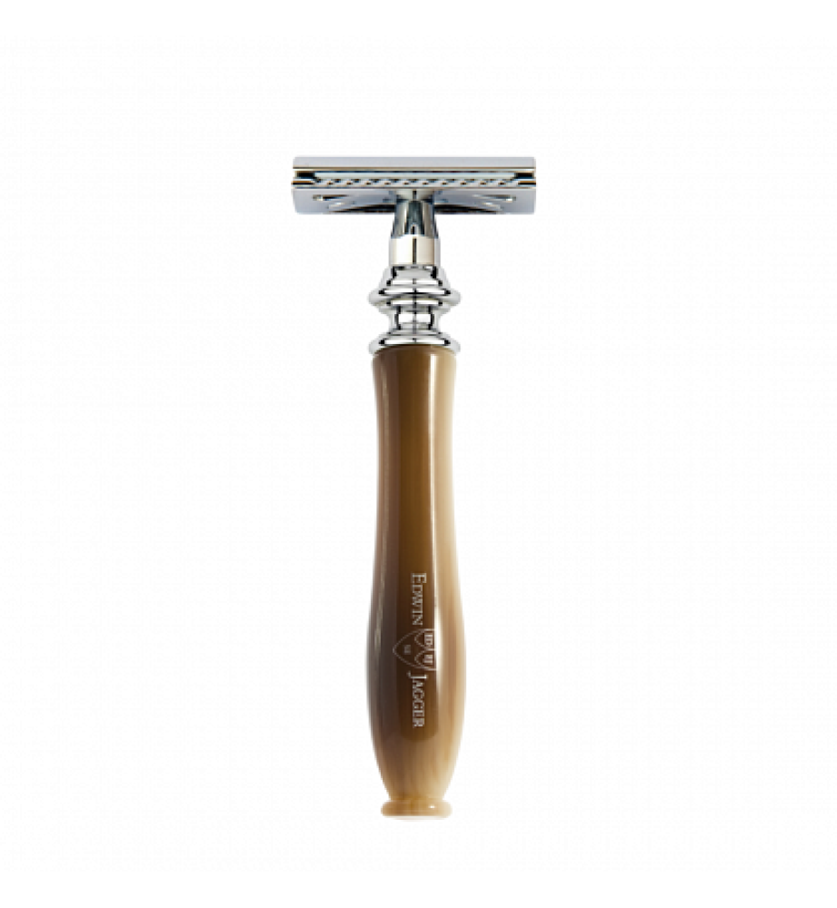 Премиальный т-образный станок Chatsworth английского бренда Edwin Jagger с ручкой из смолы цвета рога.